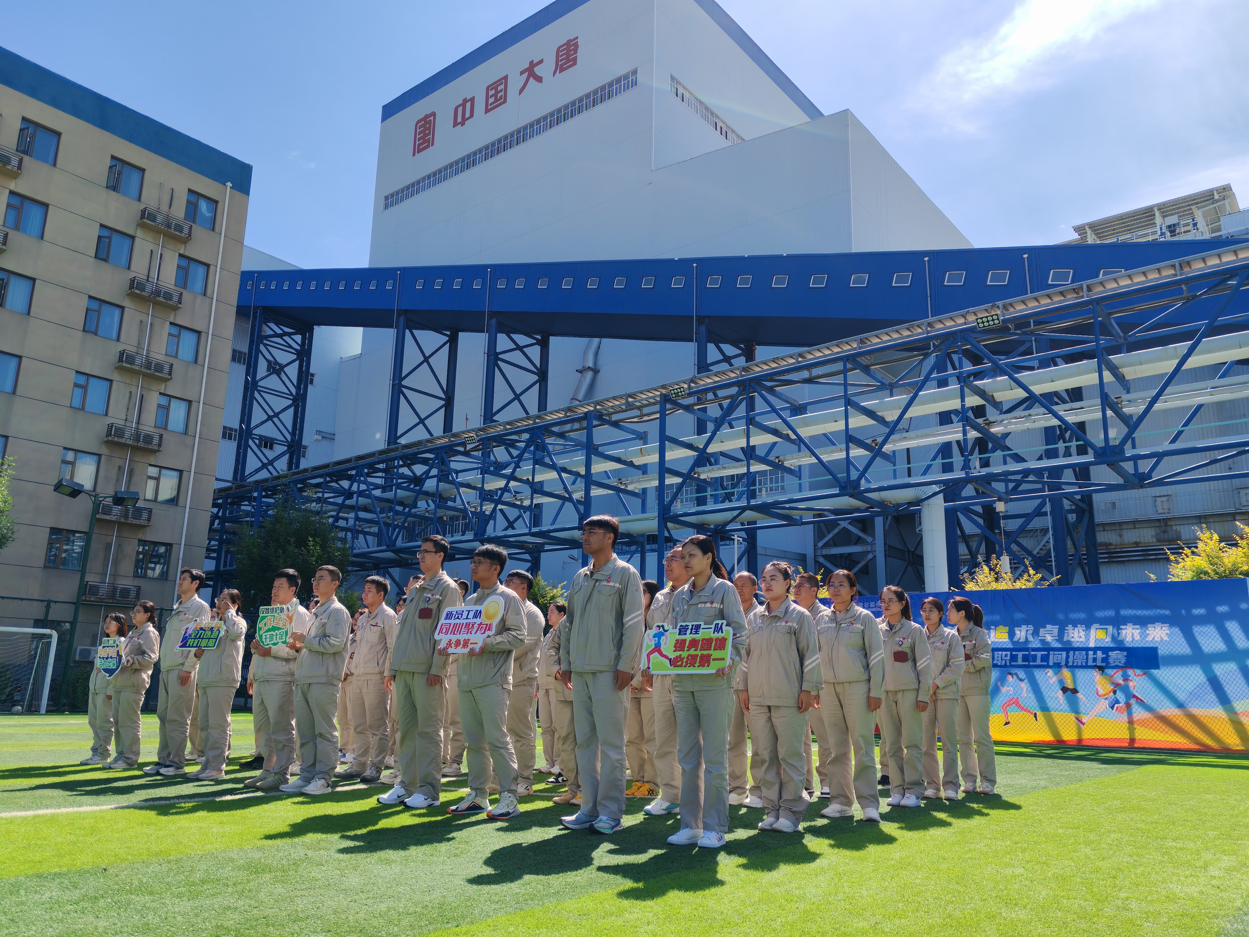 比賽中,該公司各代表隊統(tǒng)一展示了國家體育總局推廣的第九套廣播體操。同時,各參賽隊創(chuàng)意迭出,將精心編排的開場展示動作與口號巧妙融合,以躍動的身姿展現(xiàn)健康風(fēng)采,彰顯了大唐職工團(tuán)結(jié)協(xié)作、銳意進(jìn)取的精神風(fēng)貌。