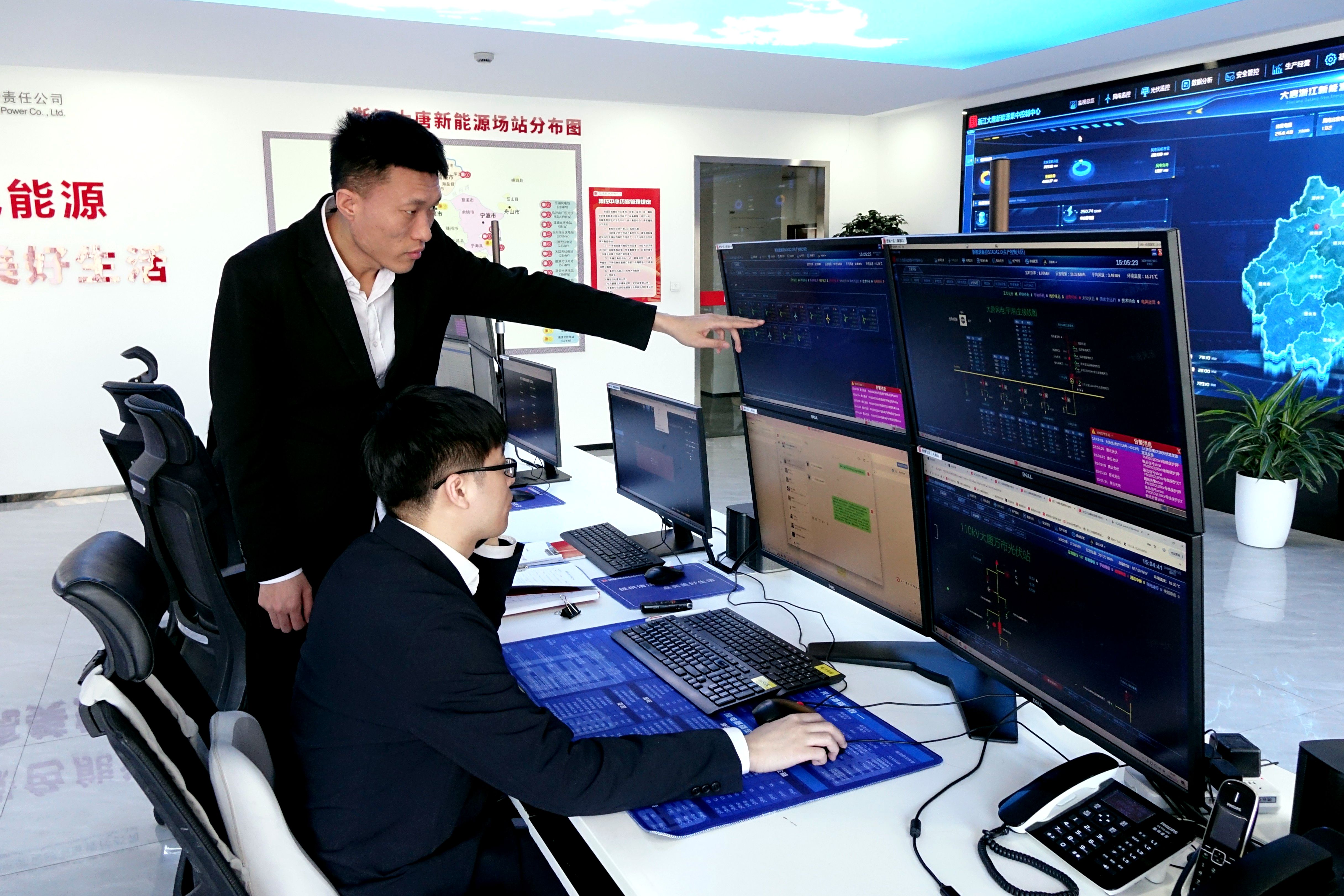 夜色漸沉,城市燈火次第亮起,浙江新能源公司集控中心監(jiān)控大屏上,各場(chǎng)站功率預(yù)測(cè)曲線起伏波動(dòng),鍵盤(pán)敲擊聲、數(shù)據(jù)提示聲在靜謐的夜里格外清晰。