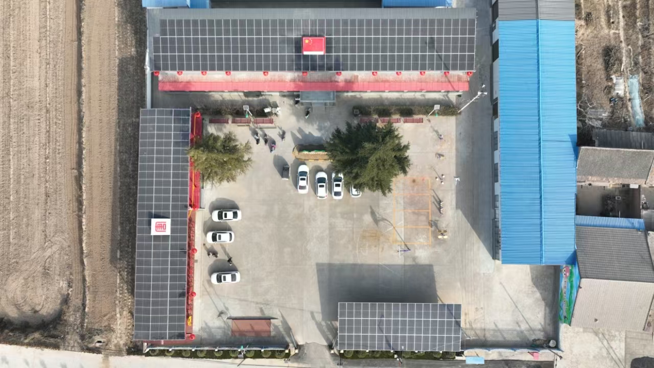 走進和家樓村村部,一排排深藍色的單晶硅組件板在日光的照射下閃閃發(fā)光,格外耀眼。分布式光伏和智能充電樁緩解周邊群眾充電壓力,方便群眾“綠色”出行。光伏板中央將中國紅、大唐紅元素融入項目中,嵌入國旗和唐標,點綴大紅燈籠、中式欄桿等中國風傳統(tǒng)風格,繪就一幅美麗鄉(xiāng)村新畫卷。
